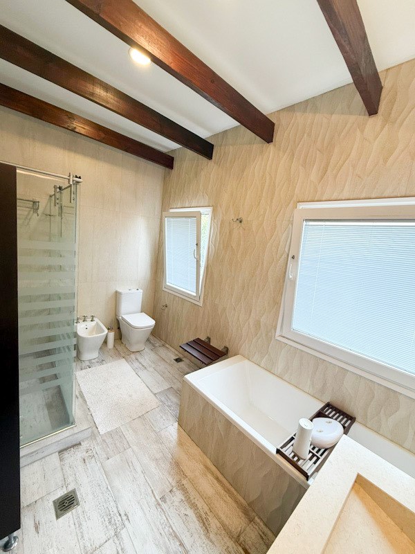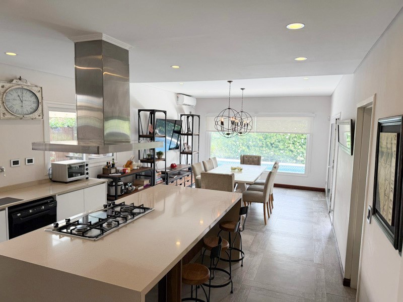 Casa con jardin y piscina de 5 ambientes en Barrio privado Rincon del Arca, Punta chica, San Fernando. Al ingresar a la casa se genera un impacto de categoria, vinculando la mayoría de los ambientes a un gran jardin, de manera que todos los espacios reciben luz y cuentan con excelente vista. Se destaca por su diseño, materiales y terminaciones. Se encuentra desarrollada en dos plantas: Planta Baja: Al ingresar nos encontramos con amplio living con hogar, a continuación estar sala de TV Cocina comedor con isla de cocina central con doble circulación y salida a la galeria. Dependencia de servicio con baño completo. Lavadero con bacha, espacio para lavarropas y caldera. Toilette de recepción Espacio de guardado Gran jardin parquizado con piscina revestida con venecitas. Galeria semicubierta , parrilla en el exterior Cochera semicubierta para dos autos ( pergola) Entrada para varios autos. Revestida en porfido. Ingreso principal y lateral al area de servicios. Planta Alta: Master suite con vestidor y baño completo con hidromasaje y ducha Junior suite con baño completo y sala de estar / playroom ( posibilidad de subdividir en 4° dormitorio) 3° dormitorio con placard Excelente estado de conservación Superficie informada : Terreno 601 mts2 Planta baja: Sup cubierta PB 146 mts2, sup semicubierta PB 23 mts2, descubiertos 453 mts2.- Planta alta: Sup cubierta PA 105 mts2.- Antigüedad 30 años. Refaccionada parcialmente a nueva.- DETALLES: Piscina con revestimiento de venecitas.- Jardín con paisajismo realizado donde se observa diversidad de plantas.- Calefacción por losa radiante con caldera.- Aberturas PVC DVH doble vidrio y mosquiteros, primera calidad. Exteriores con revestimiento simil tarquini. Pintura interior latex,- Equipos de aire acondicionado frio calor . Pisos cerámicos en planta baja y pisos flotantes en planta alta simil madera Marca Patagonia flooring Vestidor y placares con interiores completos con panelería tipo FAPLAC. Baños revestidos en ceramicos y equipados con sanitarios primera calidad. Bachas de mármol Escalera revestida en madera . Isla central de cocina con cava de vinos. Anafe a gas y horno eléctrico. Mesada tipo Silestone , bacha doble de acero inoxidable y campana. Buen espacio para guardado, distribuidos en bajo mesada y sobre mesada, instalación para lavavajillas . Termotanque. Lavadero con muebles, mesada y bacha de acero inoxidable. Instalación para lavarropas. El Barrio Rincón del arca cuenta con seguridad las 24 hs. tiene una excelente ubicación en Punta chica, próximo a Av Libertador. Cercano a universidad San Andres, colegios, clubes, marinas. Cantidad total de lotes 29. Las Medidas y Datos son a Titulo Informativo, las reales surgirán de los Títulos Correspondientes. INMOBILIARIA GALANTE TEL +549-11-6660-3877 TEL 4798-1046 mail: ventas@galante.com.ar JUAN PABLO FILIPIONOK CMCPSI 7233 Martillero público y corredor inmobiliario.